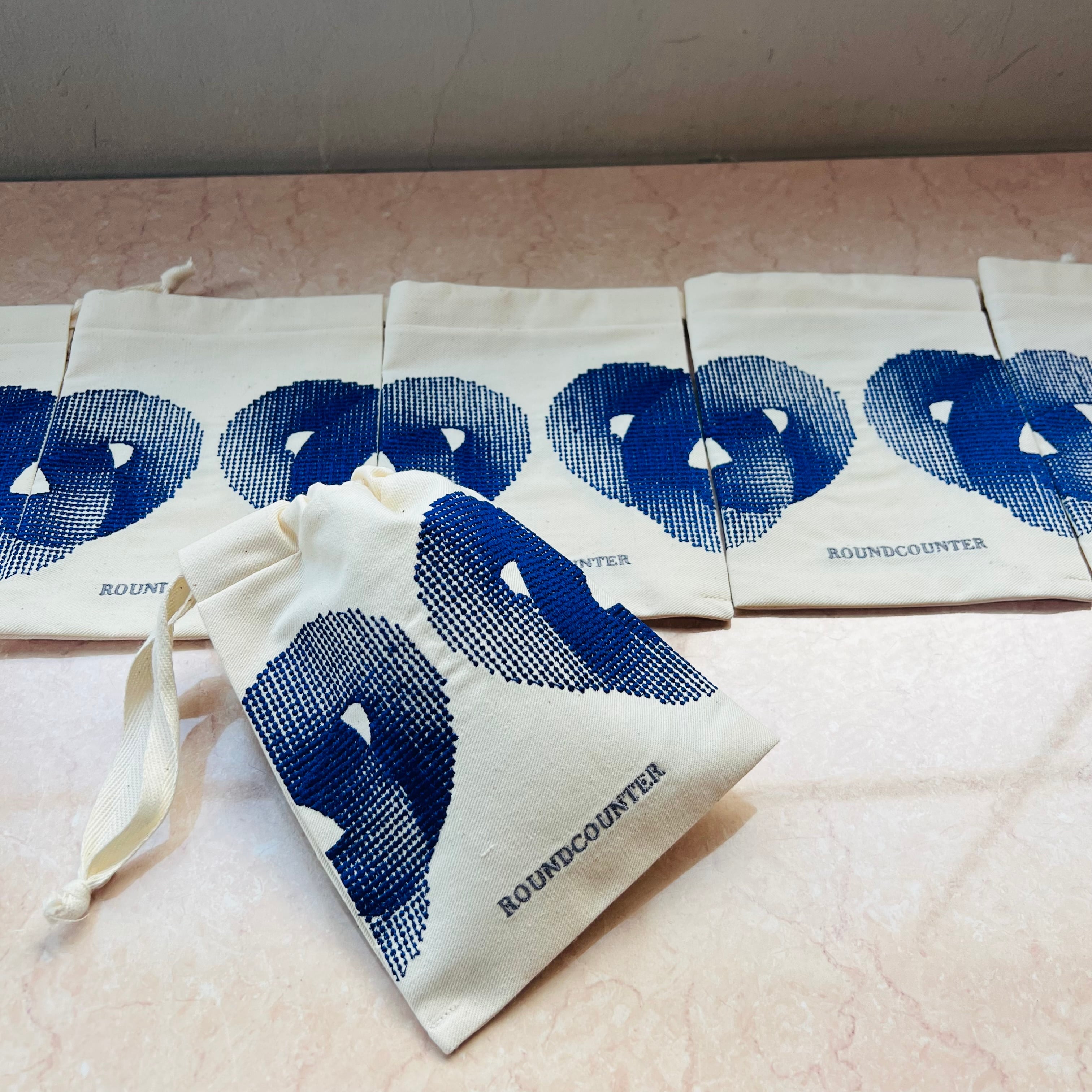 巾着の刺繍は一点ずつ制作しており、完成までに約1.5時間。